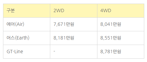 2륜과 4륜구동 가격차이에 듀얼모터가
