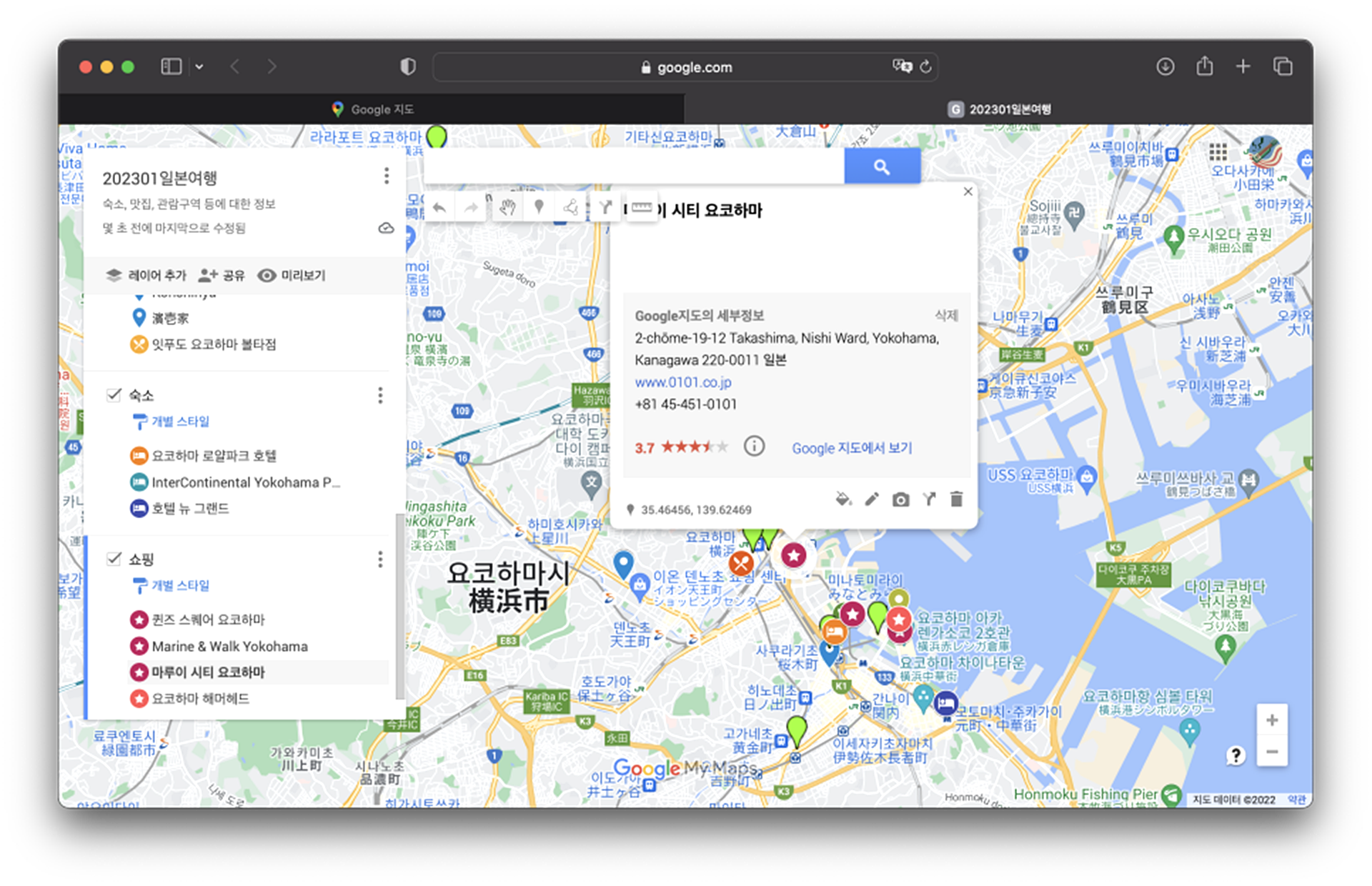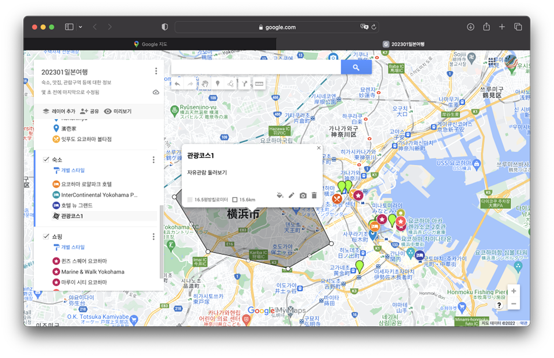 이제 방문하려는 장소를 검색하고 해당 내용들을 맵 상에서 수집하면서 편집하는 일만 남았어요.