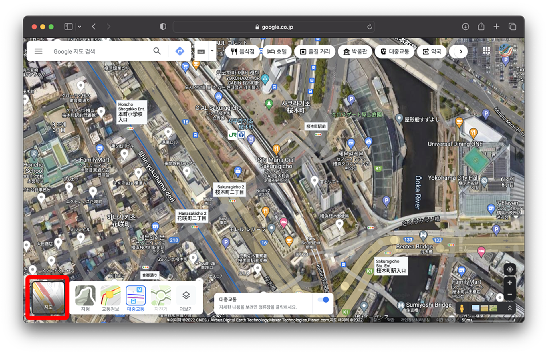 Google 지도 로드뷰 모드는 맵 하단 좌측에서 설정이 가능해요.