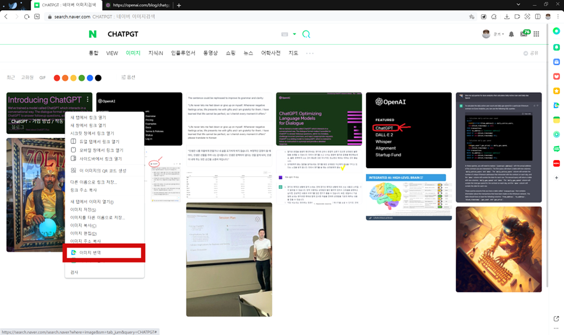 번역하고자 하는 이미지를 선택했다면 이미지에 마우스 커서를 둔 후 우클릭을 하면 이미지 번역 기능이 보이는데, 이를 클릭해주세요.