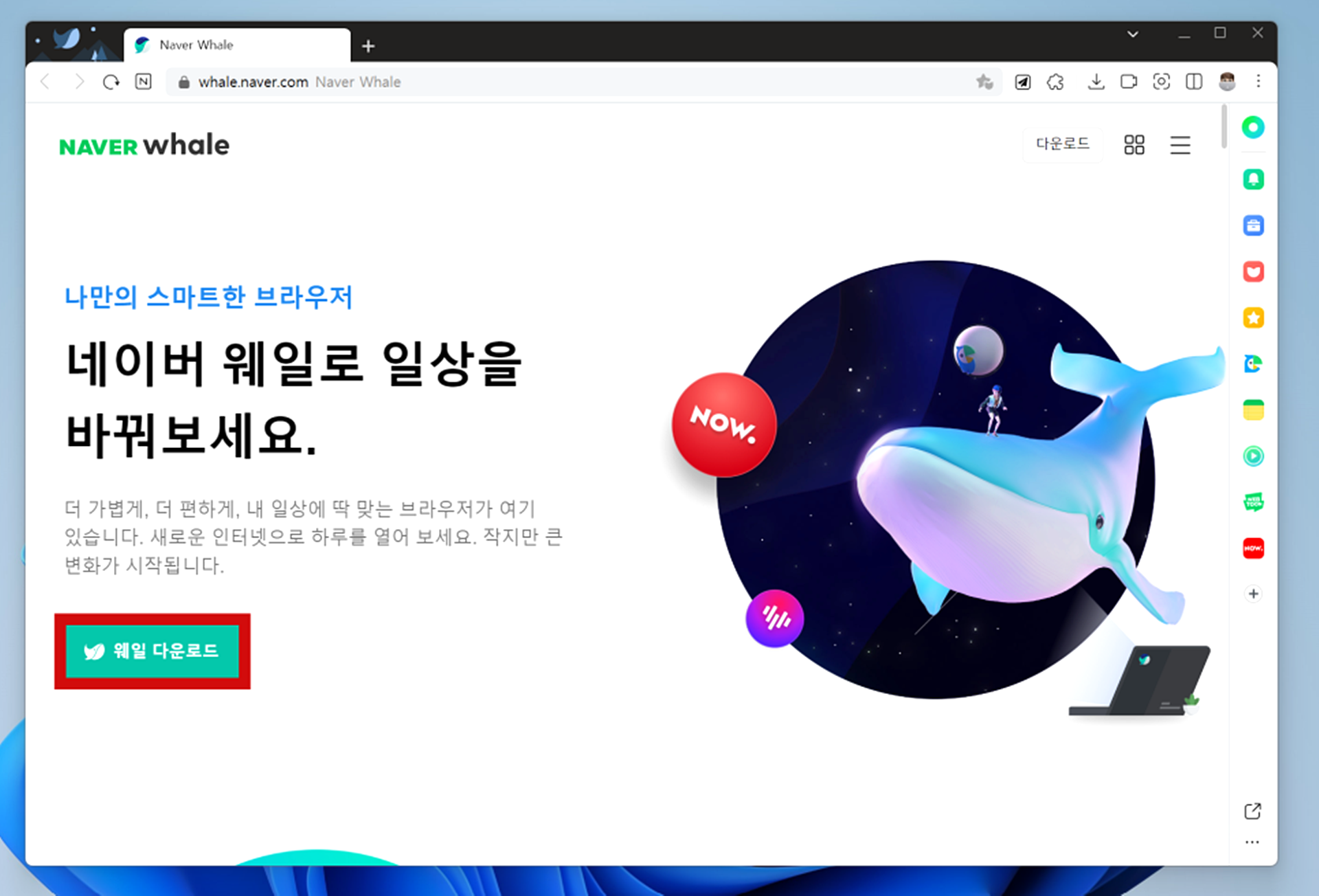 만약 웨일 브라우저가 없다면 먼저 다운로드 및 설치를 진행해주세요.
