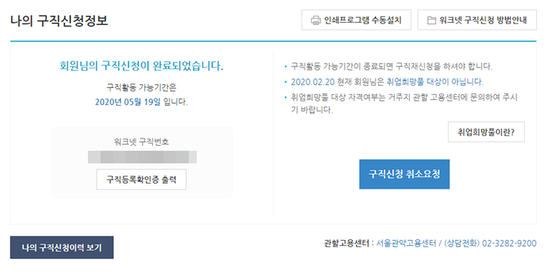 워크넷 구직등록 확인증 출력도 있으니 필요하신 분들은 출력하시면 돼요.