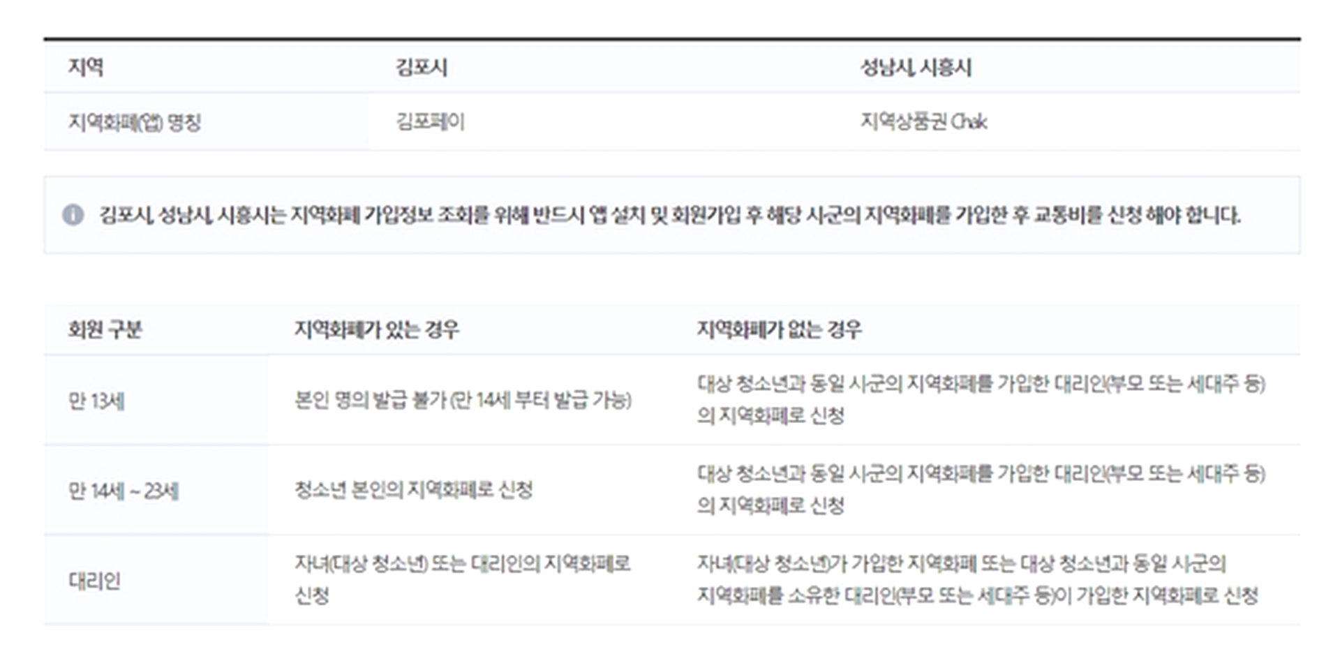 단, 지역화폐가 없을 경우 휴대전화에 경기지역화폐 앱을 설치하고 회원가입 후 거주하고 있는 지역화폐를 휴대폰 앱에 등록한 후 교통비를 신청하셔야 해요.