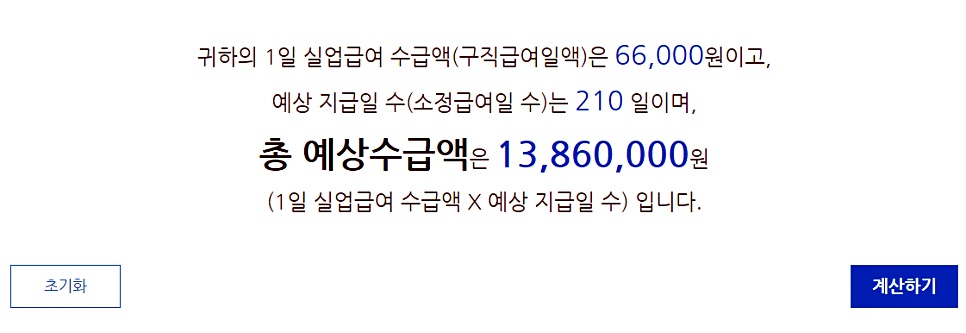 검색창에 퇴직 시 만 나이와 고용보험 가입기간을 기입하시고 퇴직 전 3개월의 1일 평균급여액을 입력하면 계산이 돼요.