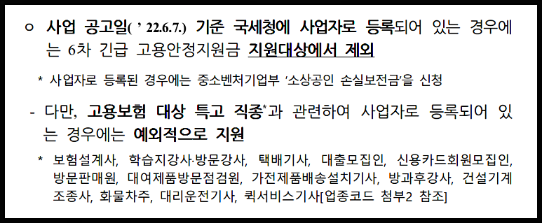 ● 6차 긴급 고용 안정 지원금 제외 대상