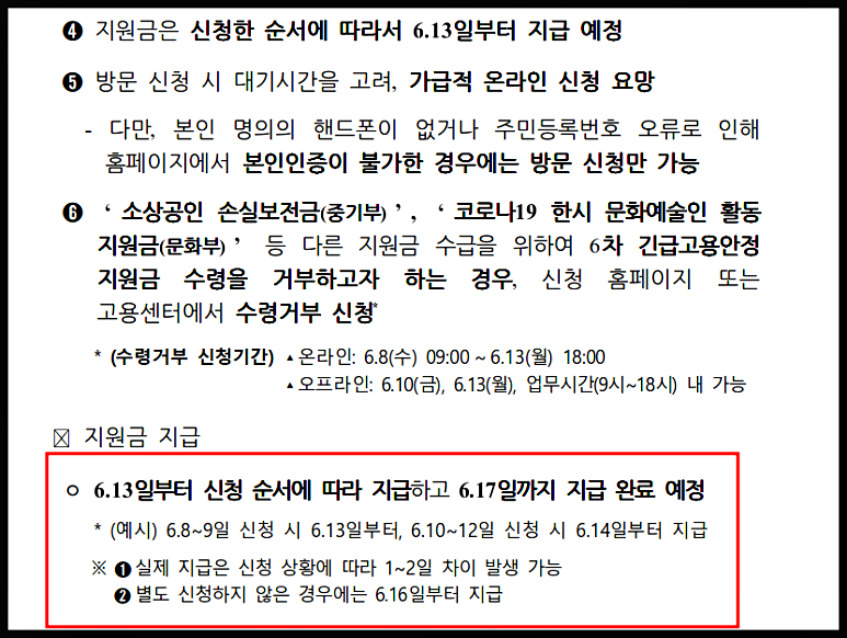 ●6월 13일부터 지급, 17일까지 완료.