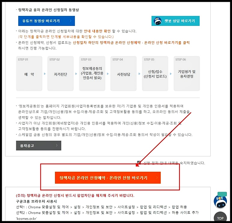 우선 정책자금으로 진행해야 하며 자가진단 이후에 신청 전 상담도 실시해야 해요.