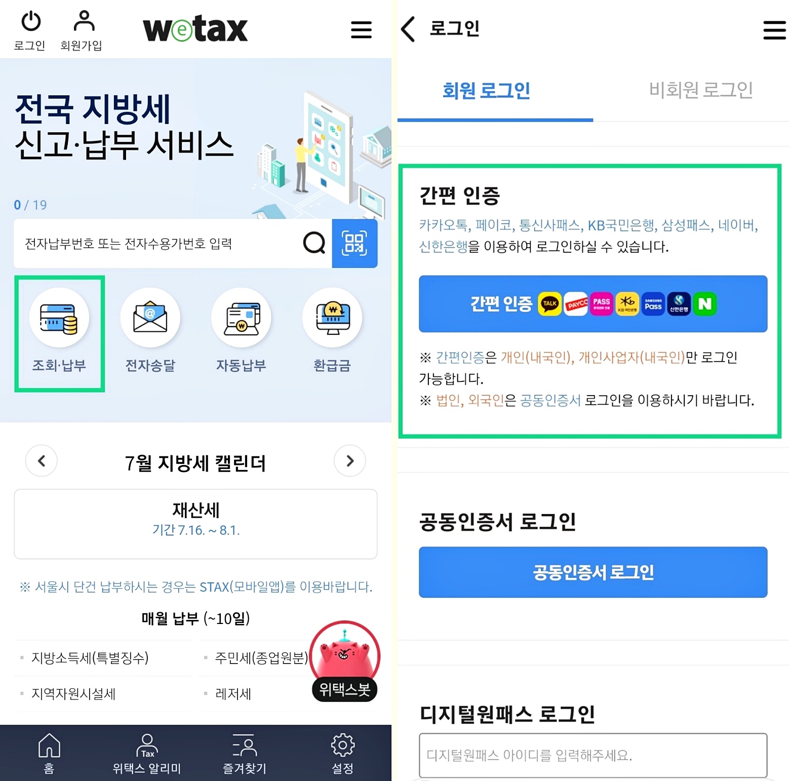 첫 번째 방법은 정석대로 스마트 위택스 앱 또는 위택스 홈페이지에서 확인하는 방법입니다.