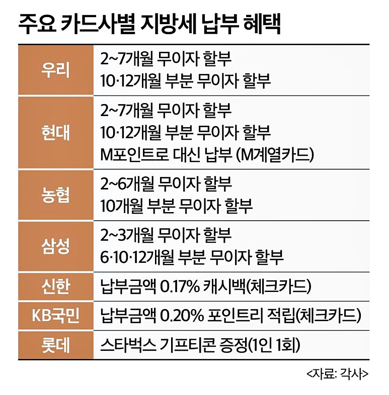 올해 주요 카드사별 지방세 납부 혜택은 다음 표와 같아요.