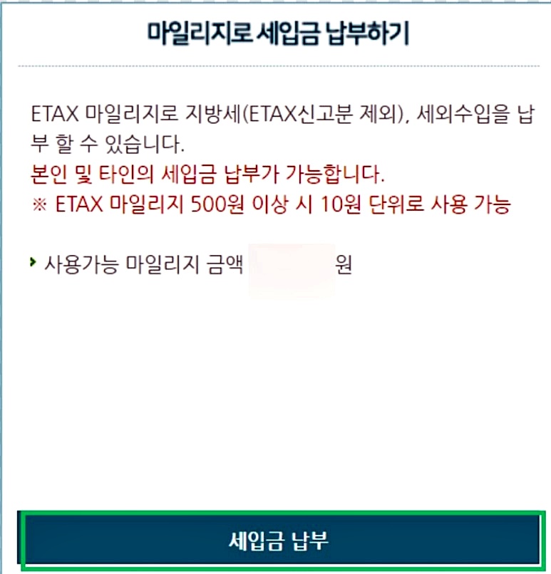 ​마일리지를 가져온 다음 세금 납부를 클릭하면 모든 재산세 납부가 종료됩니다.