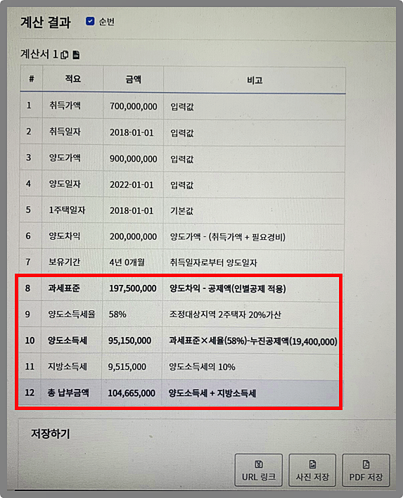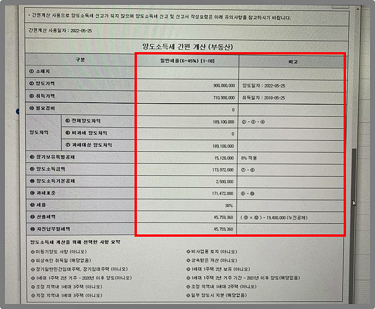 양도세는 조건이 하나만 달라져도 납부 세액이 천차만별이니 꼼꼼히 확인해서 체크하고 계산 버튼을 눌러주세요.