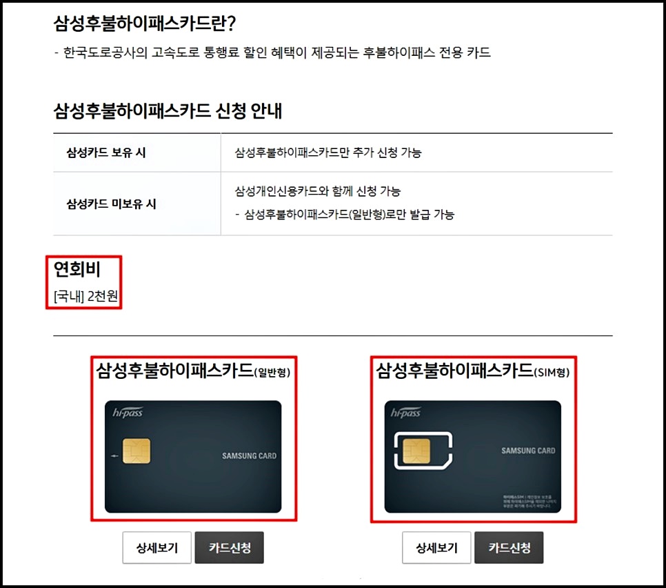 삼성카드를 예로 들면, 삼성카드 홈페이지에 들어가서 살펴보면 위와 같이 안내가 되어있어요.