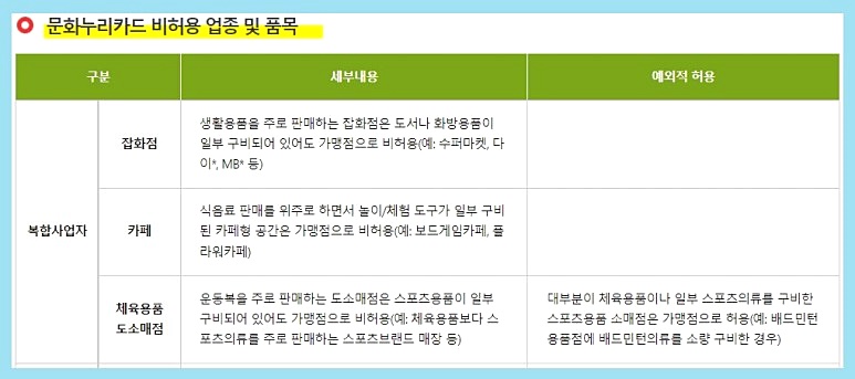 문화누리카드를 사용할 수 없는 곳