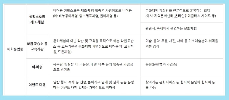 또한 비허용 생활소모품 제조나 체험도 이용하실 수 없어요. 예) 비누공예나 향수제조 등