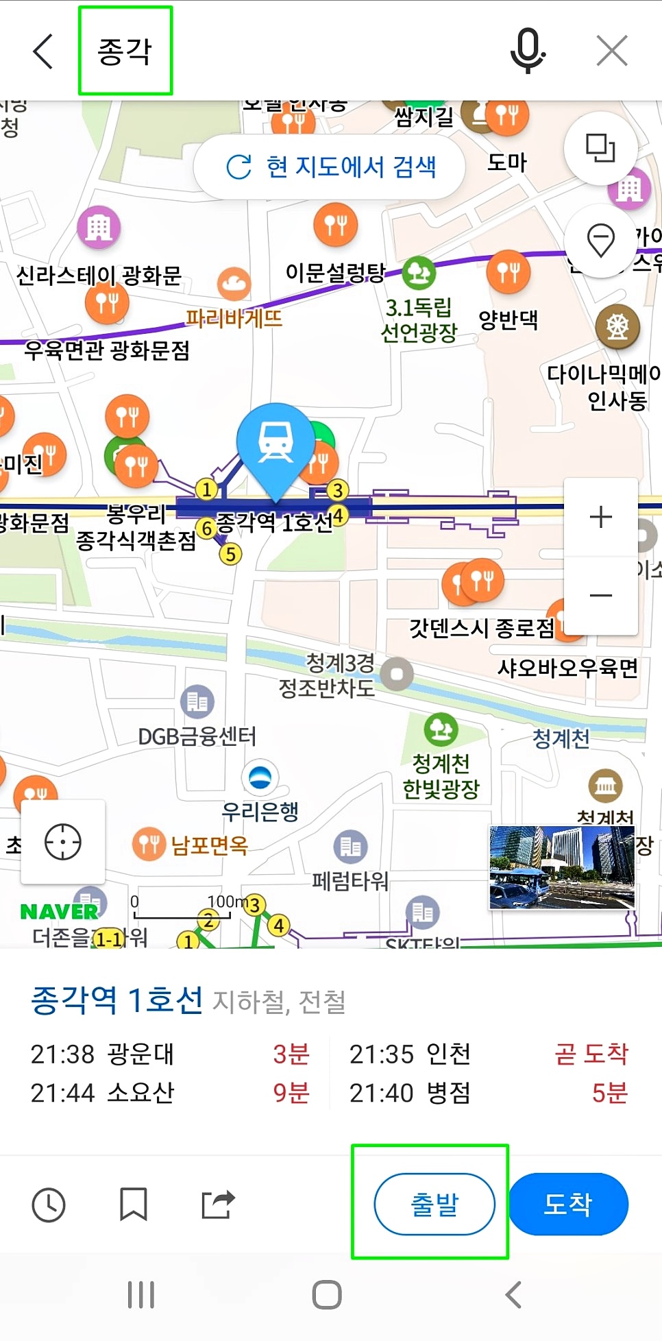 그리고 출발 버튼을 누르면 출발지 설정은 끝나요.