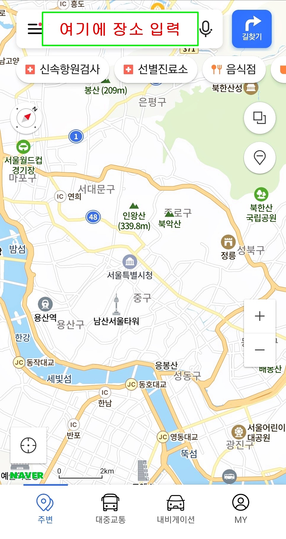 네이버 지도 앱을 실행하세요.