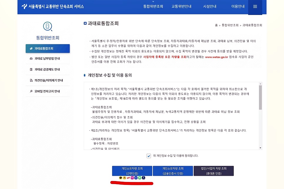 서울의 경우, 서울시 교통위반 단속 조회 서비스에 간편인증으로 개인 소유 차량을 빠르게 조회하실수 있어요.