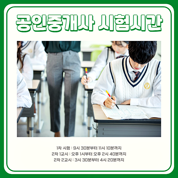 1교시는 12시 30분까지 입실해야 하고 오후 1시부터 오후 2시 40분까지 100분간이에요.