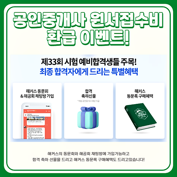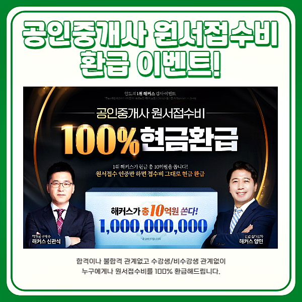 마지막으로, 공인중개사 원서접수비를 100% 현금 환급받을 수 있는 이벤트가 있어 소개해드리려고 하는데요.