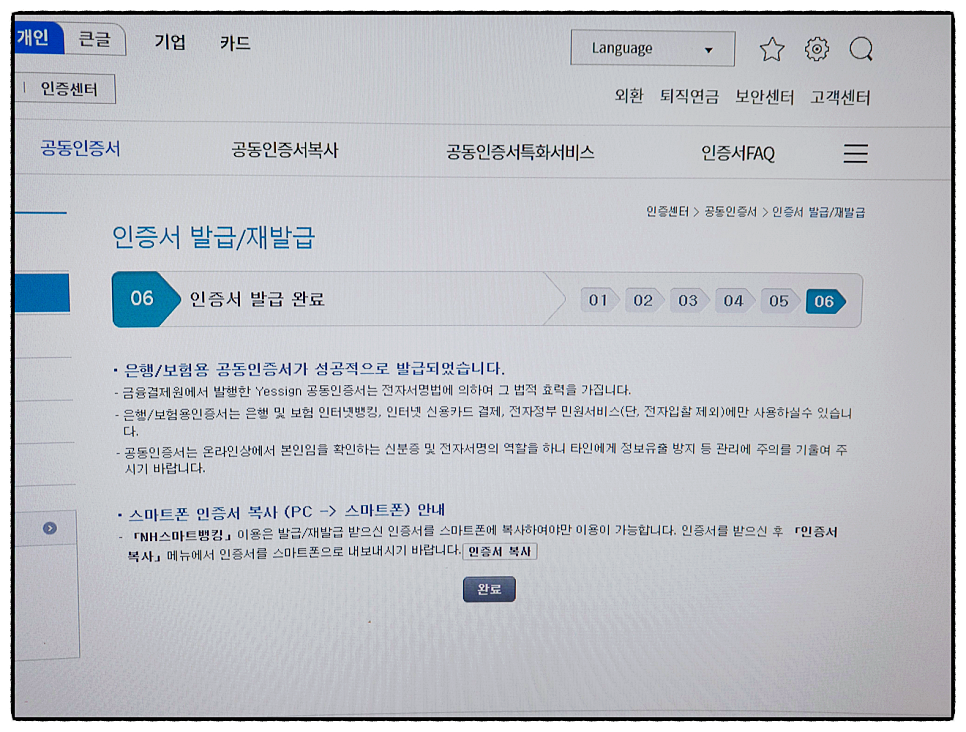 농협 인터넷뱅킹 공동인증서 발급 방법