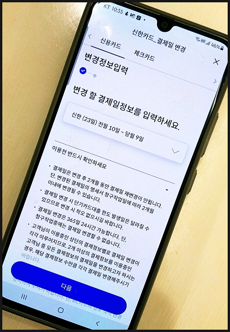신한카드 결제일 변경 방법