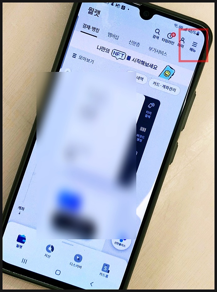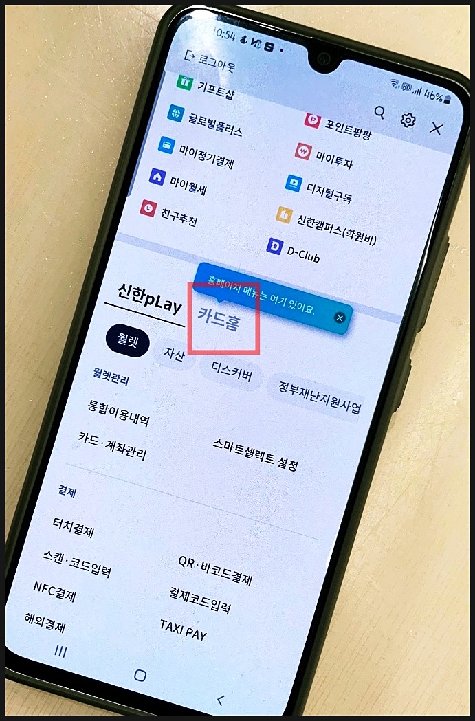 메뉴 들어가서 조금만 아래로 내려가면 위 이미지처럼 신한 PLAY와 카드홈이 보이는데요.