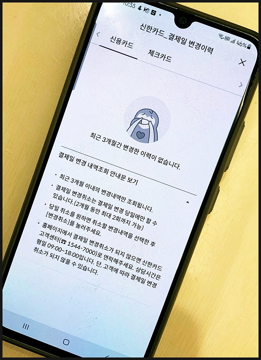 만약 앱이나 PC에서 변경이 어렵거나 전화로 하는 게 더 편하신 분들은 신한카드 고객센터(1544-7000)에 연락해서 결제일을 변경하시면 돼요.