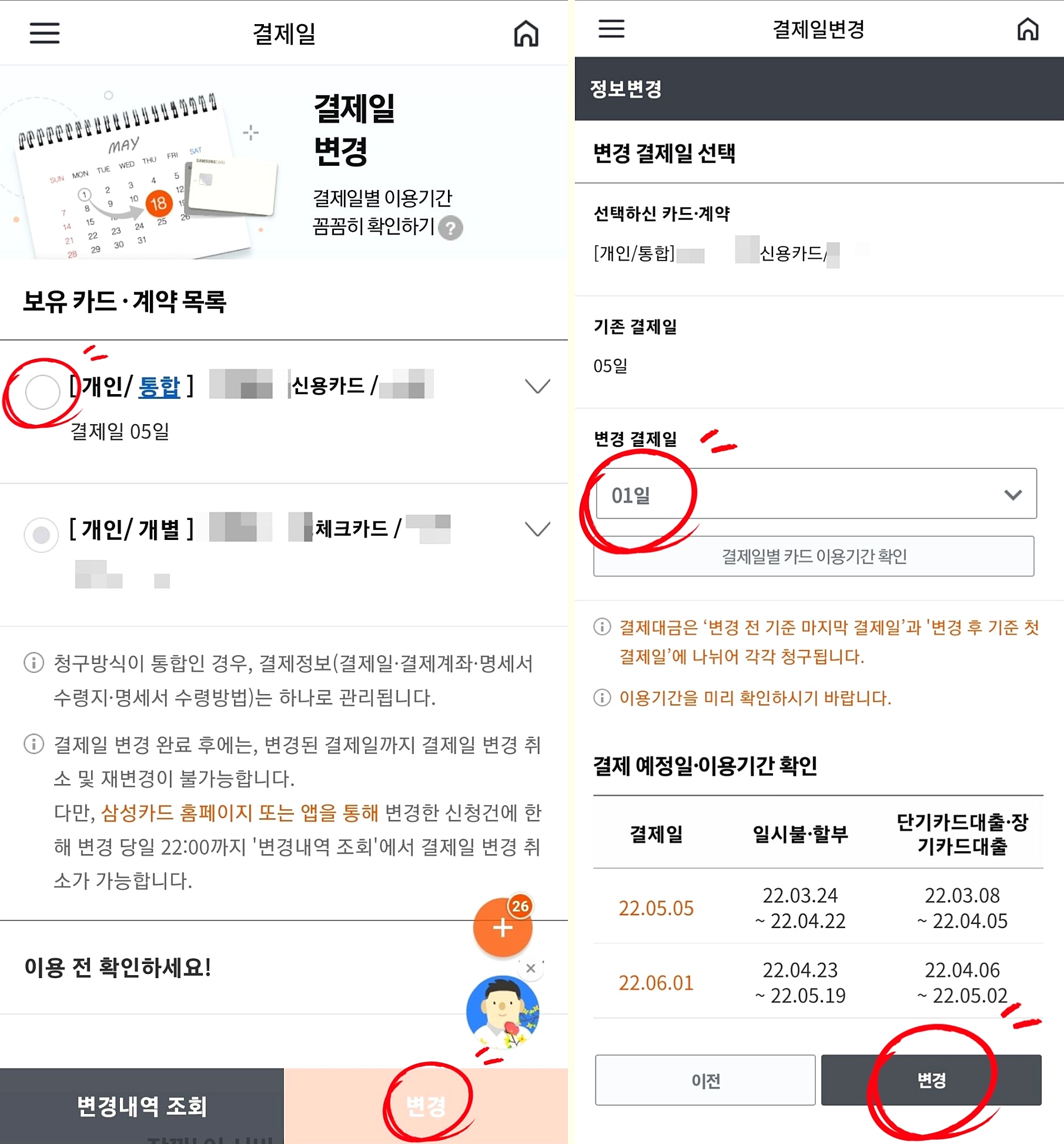 삼성카드 결제일 변경 방법