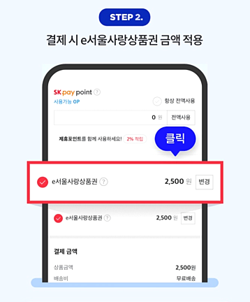 상품권 선택에서 e서울사랑상품권 선택해주세요.