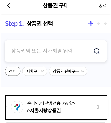 상품권 선택에서 e서울사랑상품권 선택해주세요.