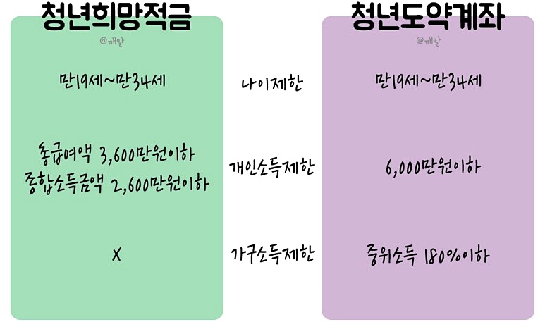 우선 청년희망적금과 청년도약계좌의 가입 조건을 비교해볼게요.