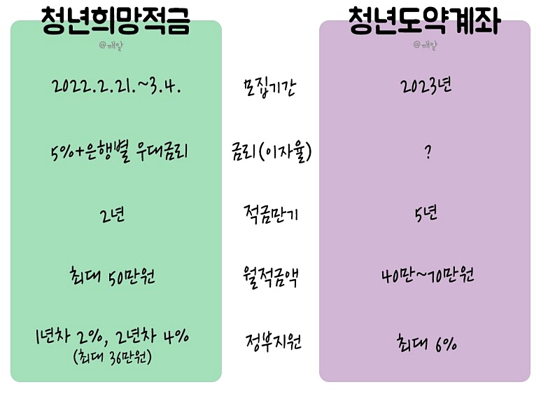 오늘은 2022 청년희망적금 vs 2023 청년도약계좌를 비교해보는 시간을 가져봤어요.