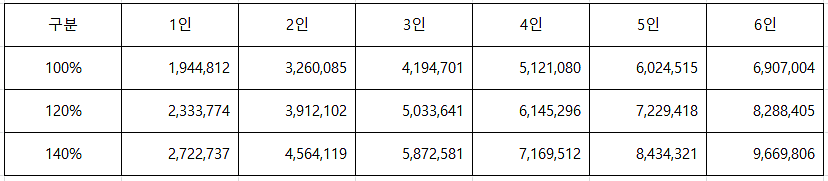 - 동거인(이모, 조카 등)은 가구원 수 소득, 재산 모두 미포함.