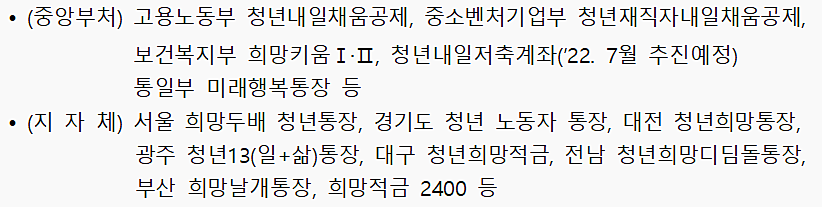 - 적립금 사용 용도 : 주거비, 창업 및 운영자금, 결혼자금, 교육비, 대출 상환(학자금, 전제 보증금)
