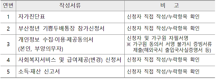 - 방문 접수, 우편접수 불가. 부산청년 기쁨두배통장 누리집 신청